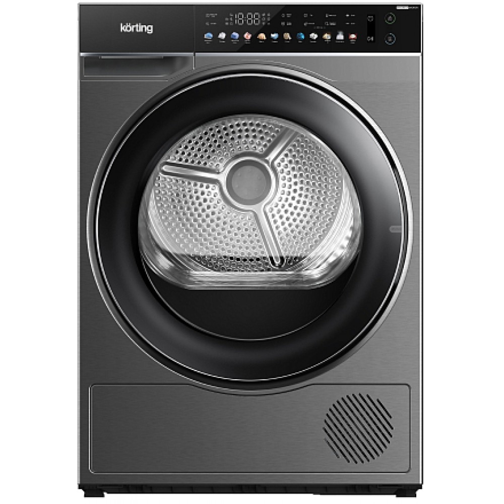 Сушильная машина Korting KD 69IHP10 An c технологией Тепловой насос и инверторным насосом, внутри прибора компактно размещаются два важных элемента горячий и холодный контуры. Задача горячего контура нагреть воздух, который далее, при помощи вентилятора, попадает в барабан и забирает влагу из мокрых тканей. Второй активный холодный контур эту влагу собирает и отправляет в съемный резервуар.