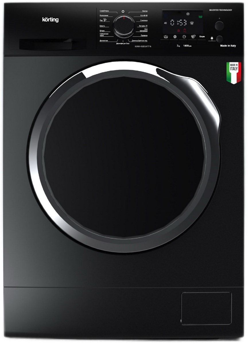 Стиральная машина KORTING KWM 45ID1477 N представляет собой идеальное сочетание стиля, функциональности и надежности. Произведенная в Италии, она обеспечивает высокое качество и долговечность, подтвержденное двухлетней гарантией. Габариты устройства составляют 85х59. 5х45. 5 см, что позволяет ему легко вписаться в любой интерьер. Дизайн машины выполнен в классическом черном цвете, который дополняется контрастными черными элементами - люком и регулятором. Такое оформление придает модели элегантности и современности. Фронтальная загрузка обеспечивает удобство использования, а вместимость барабана в 7 кг позволяет стирать достаточное количество белья за один цикл. Управление машиной осуществляется с помощью электронного блока, на котором расположен информативный дисплей. С его помощью можно легко выбрать одну из 15 программ стирки, подходящую под конкретный тип ткани или степень загрязнения. Благодаря LED-индикации, пользователь всегда будет в курсе о настройках, продолжительности и этапах выполнения программы. Столь обширный выбор режимов стирки делает эту модель идеальной для любого типа белья - от деликатных тканей и шерсти до джинсов и пуховиков. Отдельно стоит отметить наличие функции Моя программа, которая позволяет сохранить настройки для самых часто используемых режимов. Скорость отжима в машине Korting KWM 45ID1477 можно регулировать в диапазоне от 400 до 1400 об мин. Это позволяет выбрать оптимальный режим, исходя из типа ткани и желаемого уровня сухости белья.